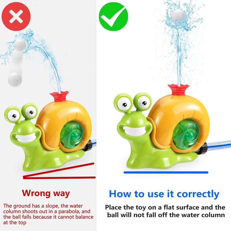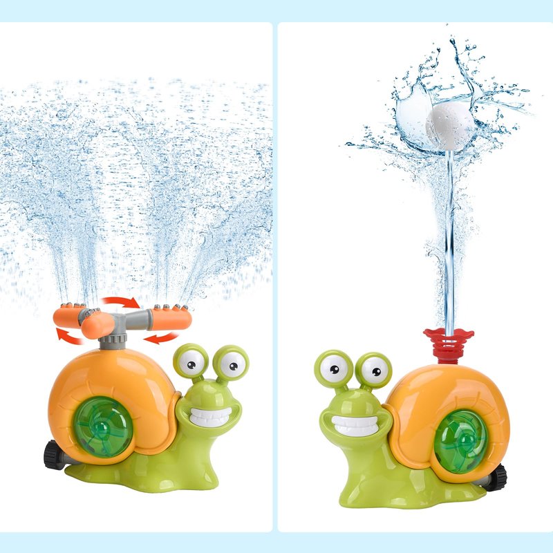 - UNIQUE DESIGN: This snail sprinkler toy set includes two sprinkler heads. One is a water column nozzle that can be combined with the included baseball to train baseball batting skills the other is a 360° rotating nozzle. Provide hours of water play fun for kids alone or with