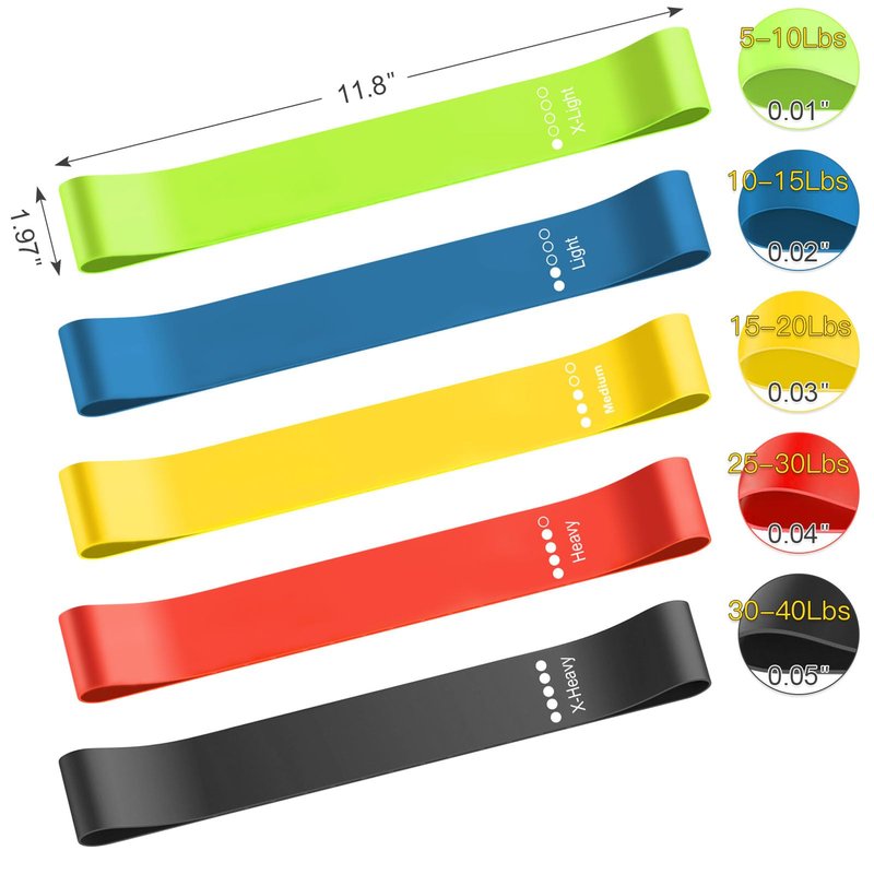 - 【Perform better resistance bands】5 different colours, 5 different poundage specifications.Light, medium, medium-heavy, heavy and extra-heavy.Specification guidelines:5-10 lbs recommended for arm training, 10-20 lbs for buttock training, 20-30 lbs for leg training, 30-40 lbs for legs, more than 40 lbs.