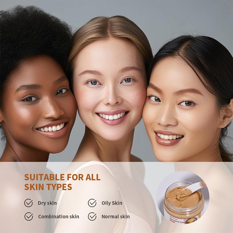 - For All Skin Types: Turmeric clay mask suitable for many skin types including oily, dry and combination skin. The product is gentle for daily use, recommended once a week for dry skin and twice a week for oily and combination skin