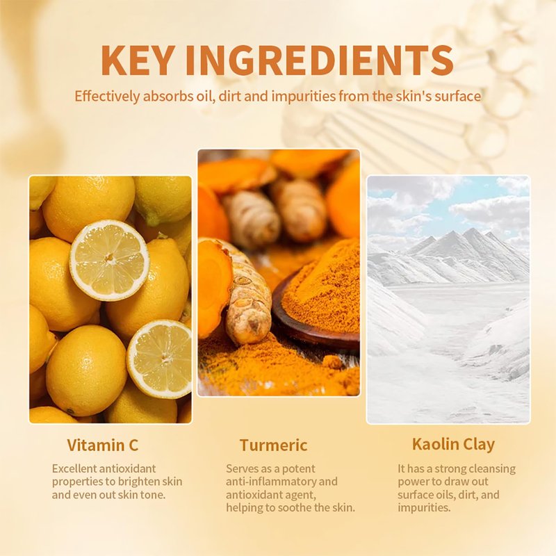 - Natural Plant Ingredients: Our clay mask uses natural and organic ingredients,such as turmeric, Vitamin C, and kaolin clay help to gently soothe the skin, effectively nourish the skin and take care of your skin health