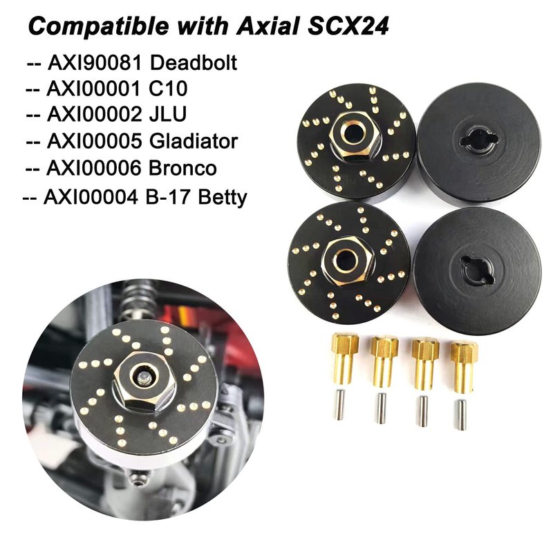 - The Upgrades Brass Wheel Weights Compatible with Axial SCX24 Deadbolt AXI90081, AXI00001 C10, JLU AXI00002 , B-17 Betty AXI00004, Gladiator AXI00005,Bronco AXI00006 1/24 RC Crawler Truck Car.
