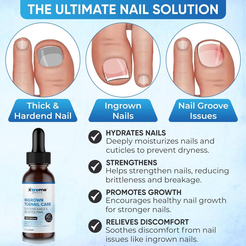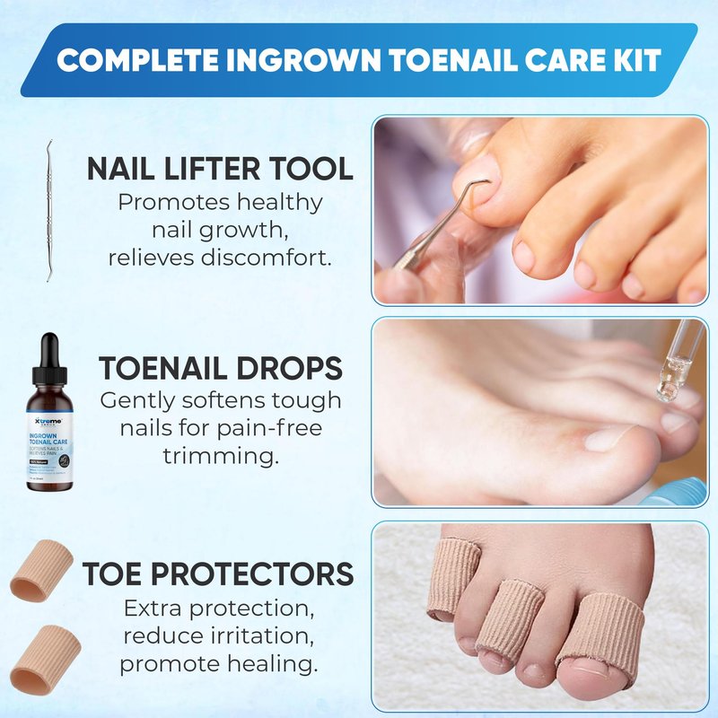 Xtreme Derma Ingrown Toenail Treatment - 3 in 1 Ingrown Toenail Removal Kit + Pain Relief - Ingrown Toenail Drops + Toe Protectors + Nail Lifter