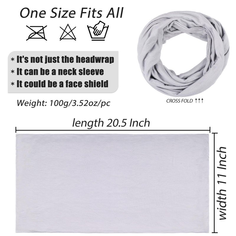- Design: Solid color design is easier to match with clothes, fashionable headscarf fully covers the entire head. Can be used as a headwrap, beanie hat, neck cover, hair band and many other uses. Simple to wear, wraps around the head in a variety of ways, stretchy and firm without falling off.