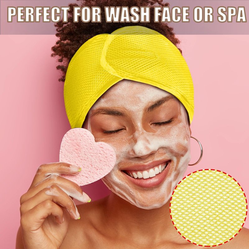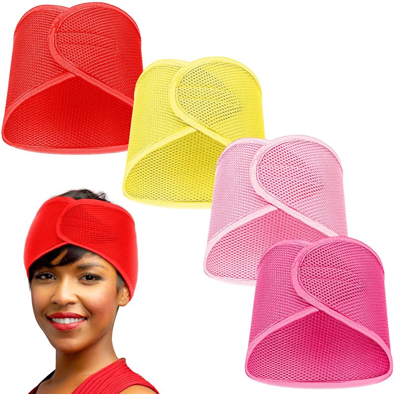 Xuhal 4 Pieces Mesh Hair Wraps for Black Women's Natural Hair - Sleeping Cap, Spa Headbands, Face Wash Nets (Orange, Yellow, Pink, Rose Red)