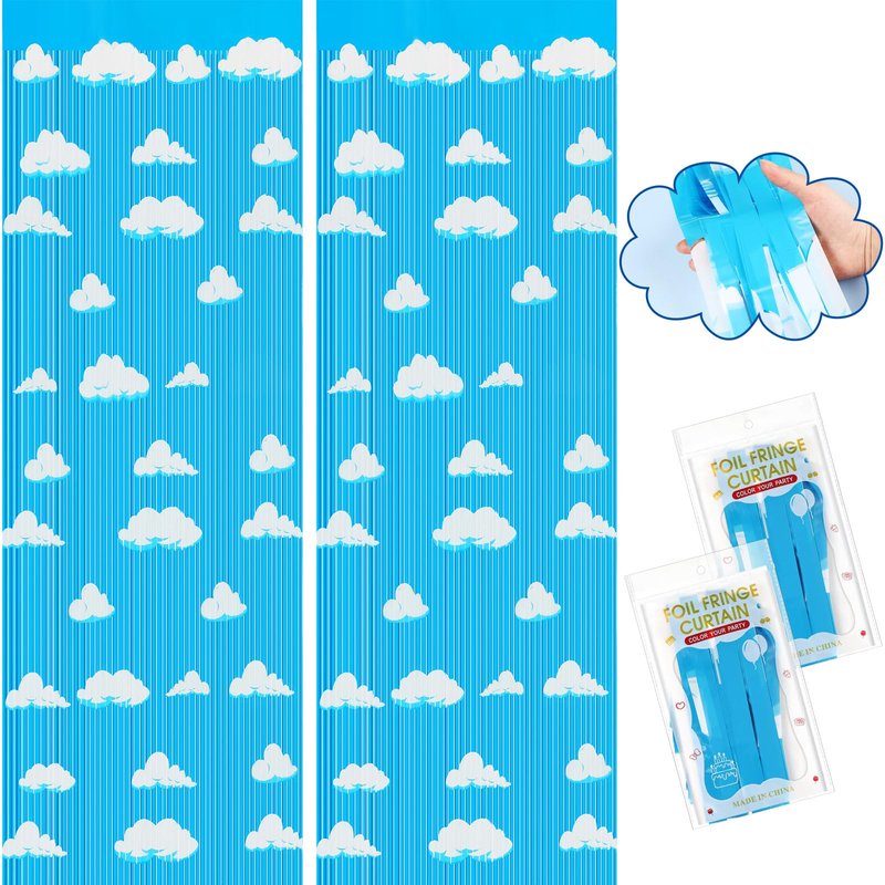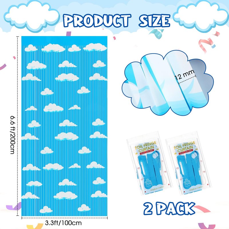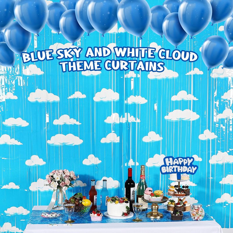 - Product List: you will receive 5 pieces of blue sky and white clouds theme design aluminum foil fringe curtains, each curtain is printed on the comfortable blue sky and white clouds pattern, is a cartoon birthday party and other themed parties dream photo props background
