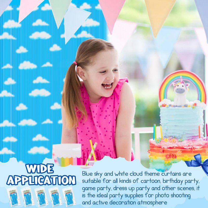 - Ideal Party Supplies: blue sky and white cloud theme curtains are suitable for all kinds of cartoon, birthday party, game party, dress up party and other scenes, it is the ideal party supplies for photo shooting and active decoration atmosphere, suitable for doorway, windows, walls, bedrooms, game rooms and stage backdrop decoration