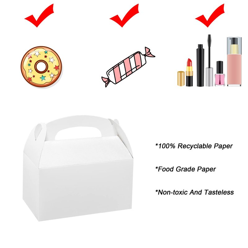 - DURABLE & RELIABLE - Reject the cheap quality gift boxes. All the White gift boxes are made of high quality food grade Kraft paper with sturdy structure to lift both light and heavy contents, safe, non-toxic and no odor, offering the max safety for the family.