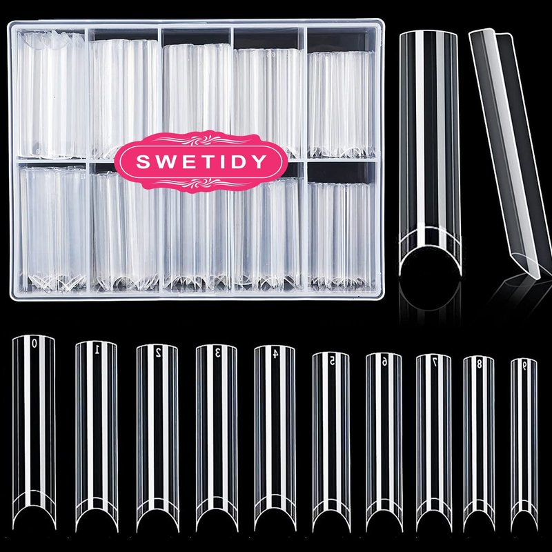 - 【Create Different Shapes】 Clear no c curve nail tips are pre-shaped, you can use them directly to extend your nails in salon or home DIY nails extra-long length can be trimmed to suit your desired shapes, like long square nails, long coffin nails, long french nails, short coffin ballerina, and so on.