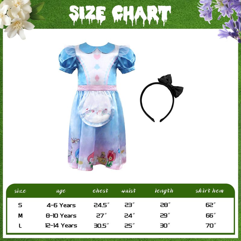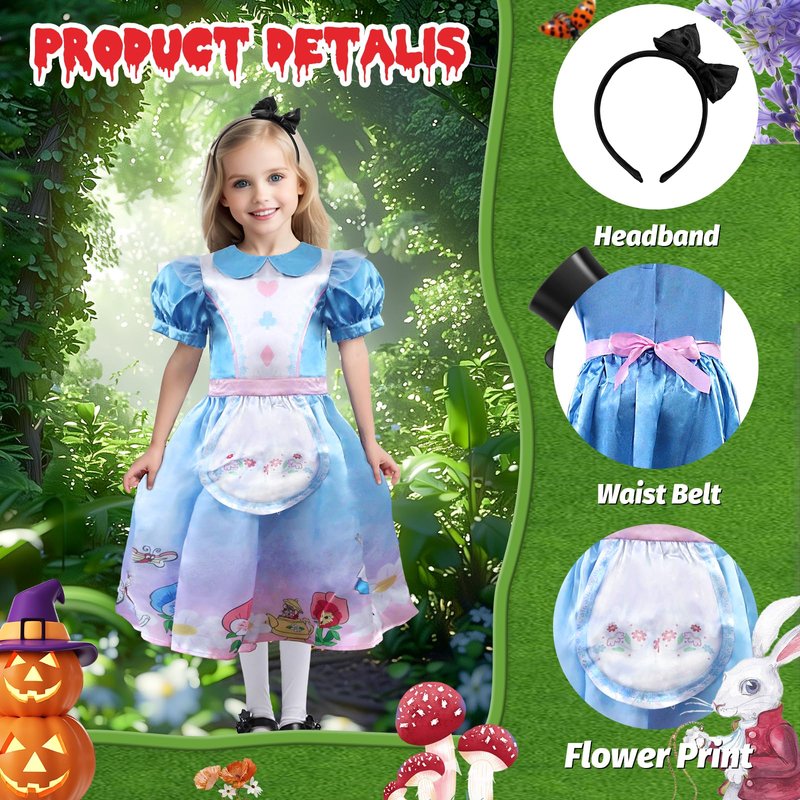 - Our Halloween costume includes a blue dress and a black headband, socks are Not included. The princess dress is eye-catching, making it a must-have for trick-or-treating or a Halloween party.