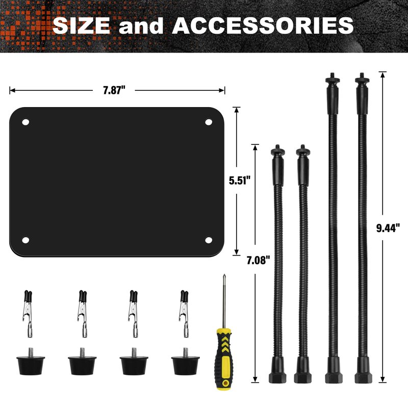 - Package includes: 1 solid metal base, 4 flexible arms with alligator clips, 4 Phillips screws, 1 mini Phillips screwdriver. 100% after-sales experience, please contact us if you have any questions, we will provide you with high-quality after-sales service.