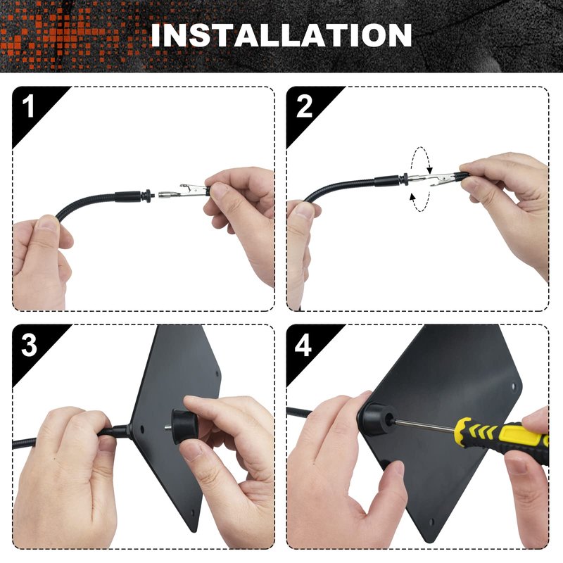 - Sturdy Gooseneck and Insulated Alligator Clips: 2 Adjustable 9.44" and 2 Adjustable 7.08" Metal Gooseneck Arms (Solder Hands), which lock tightly to the base with screws. Alligator clips can be rotated 360 degrees, then positioned and locked in place. The clip comes with a rubber sleeve, so you can avoid scratching the polished surface of your jewelry or shorting out the circuit board.