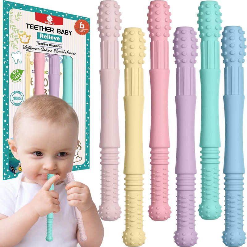 XYUNMUU Baby Teething Toys 6 Pack Silicone Teether Toy for Baby, Reaches Front, Back, and All New Teeth Types, Easy to Hold (6 Pack)