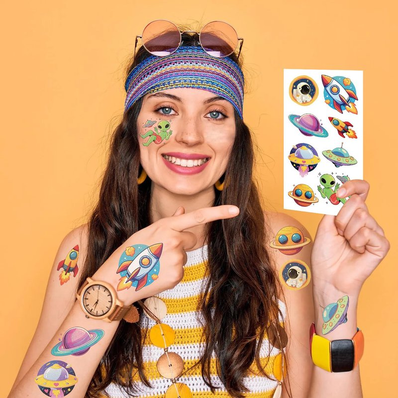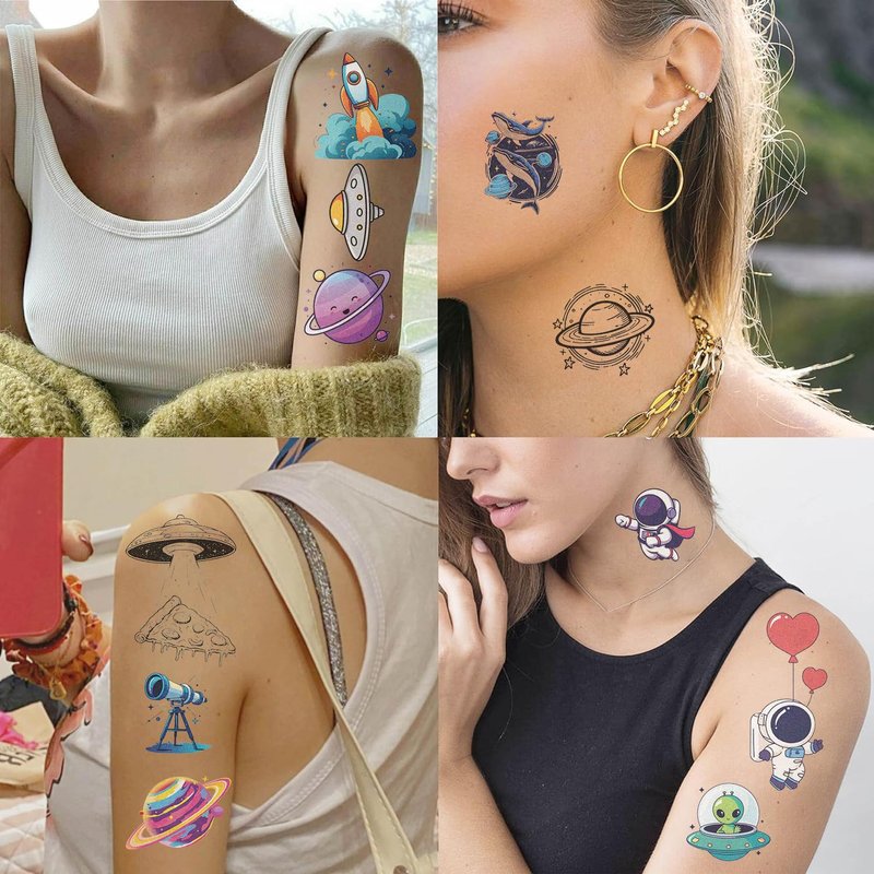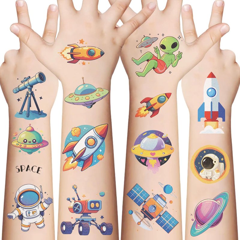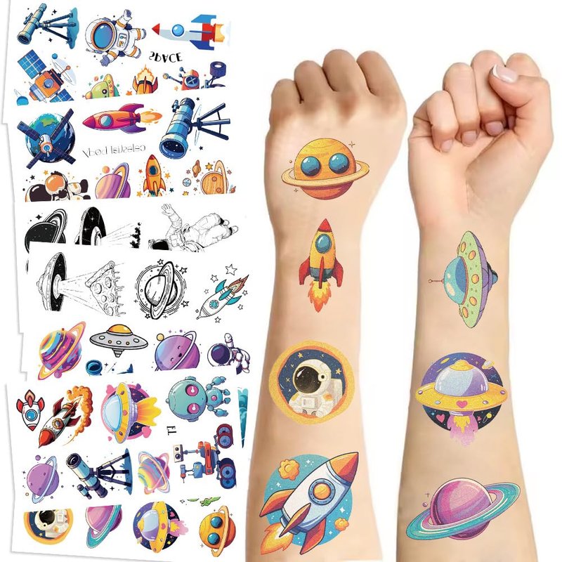Y 10 Sheet Space Planet Temporary Tattoo Stickers Children Makeup Festival Carnival Birthday Party Fake Body Tattoos for Astronaut Outer Space Theme Face Tattoos Body Tattoos