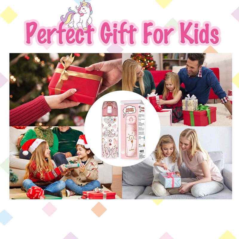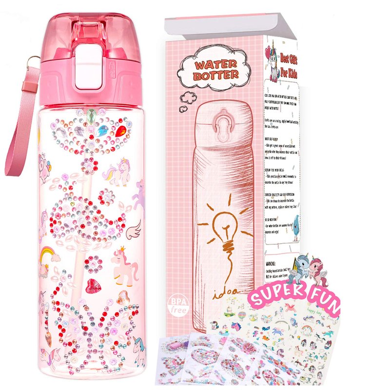 - 【BUILD YOUR OWN WATER BOTTLE】Kids have the chance to build a unique water bottle with gems & unicorn stickers, and they will love to drink more water in school