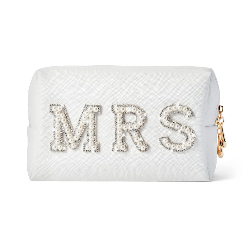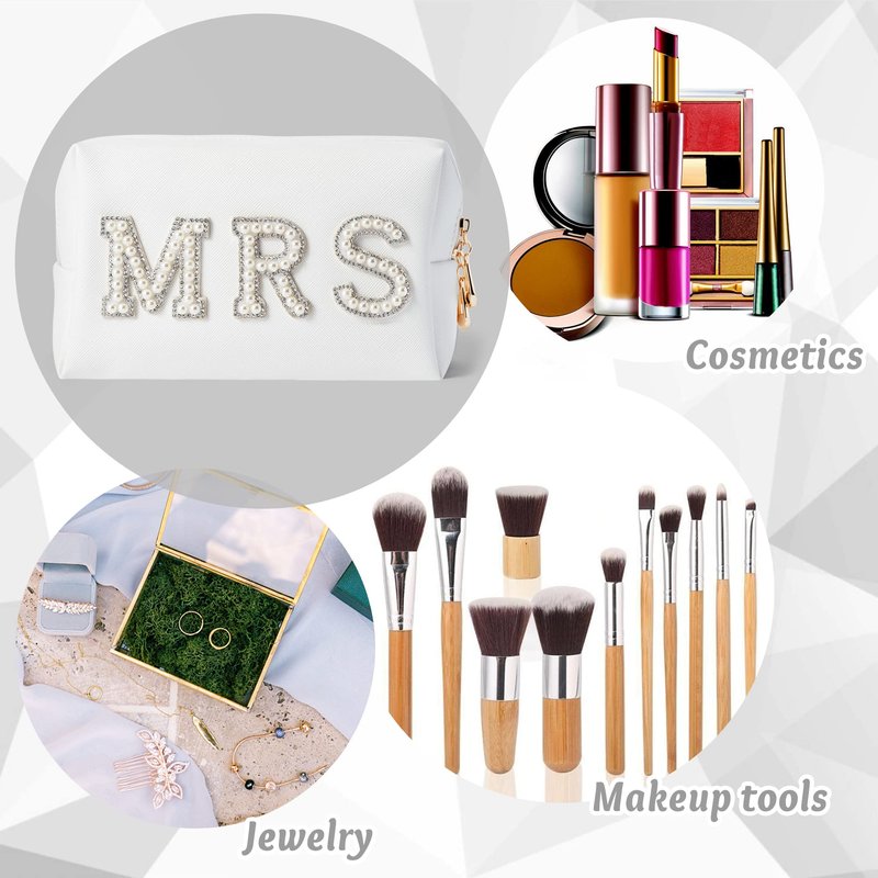 - Elegant Cosmetic Toiletry Bag: This white toiletry bag designed with bright pearl and rhinestone “MRS” letter patch on the front, and gold plated alloy zipper. It exudes an elegant and noble atmosphere all the time, believe you will be the focal point among your friends with this bag.