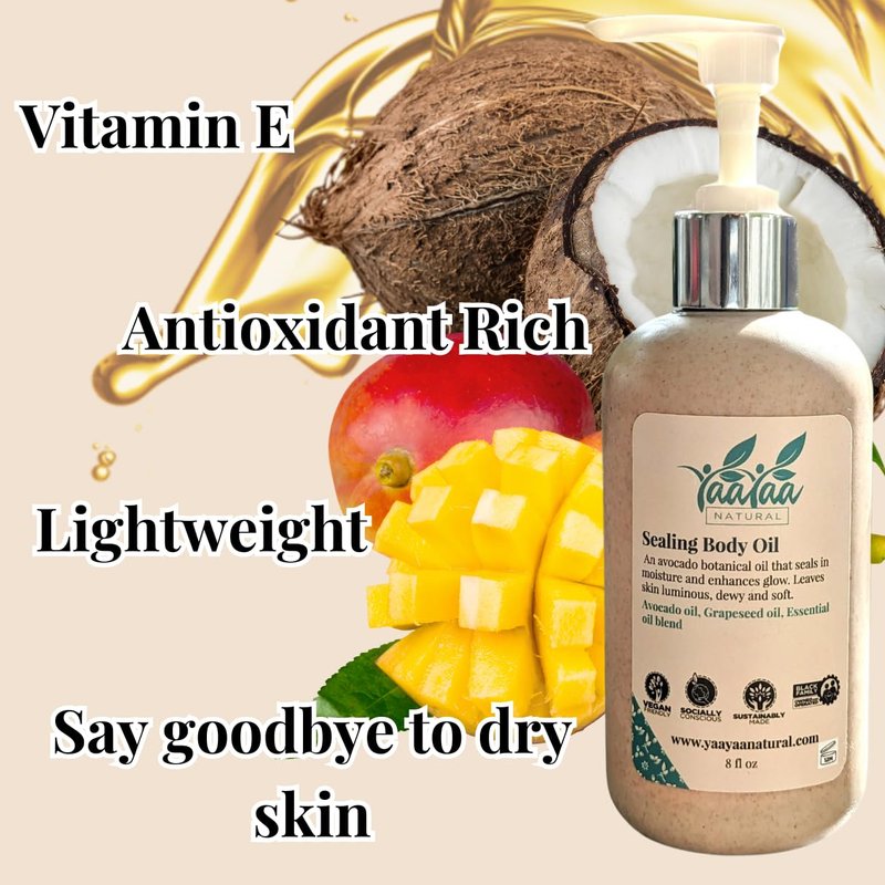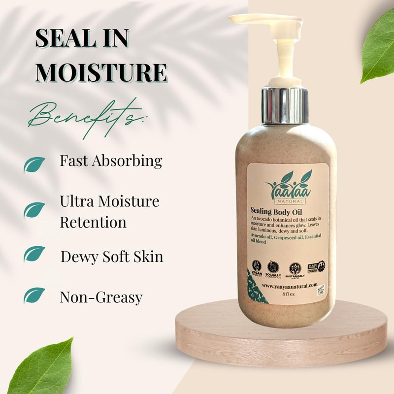 YaaYaa Natural Sealing Body Oil - 8 oz - After Shower Body Oil - Non Greasy - Deep Nourishing - Absorbing- Glow- Vegan & Cruelty Free Moisturizer For Dry Skin - For Beards -Sensitive Skin