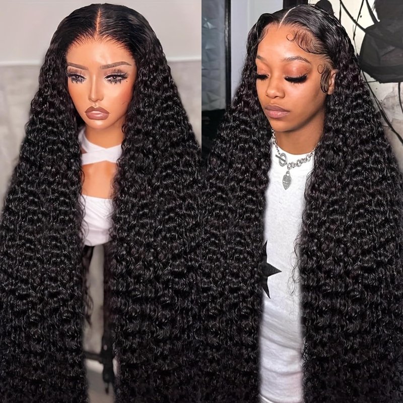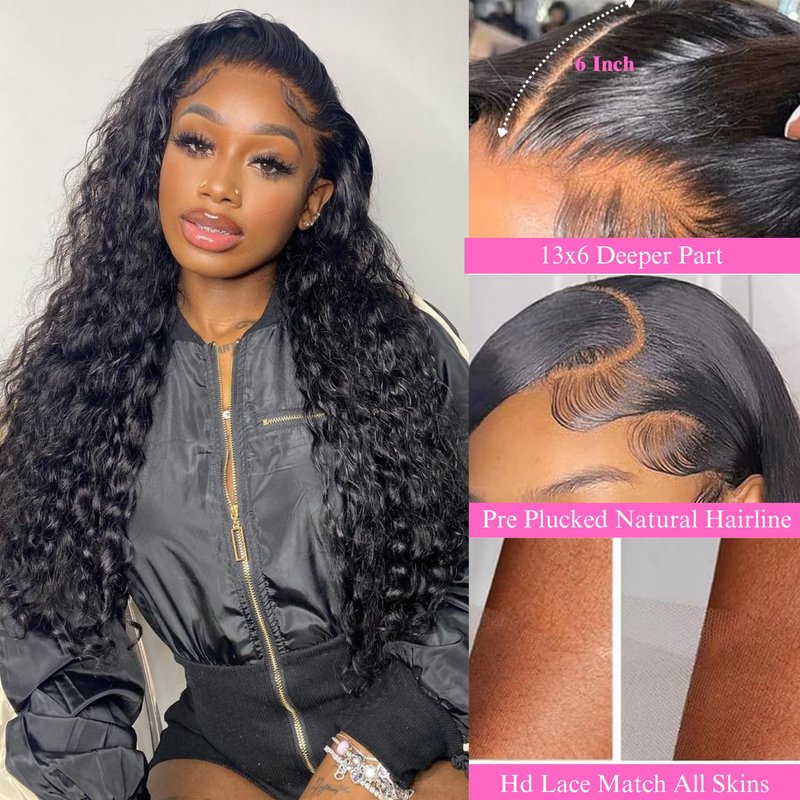 Hair Texture: Water Wave Deep Curly human hair wig HD transparent lace front wigs, pre-plucked natural hairline