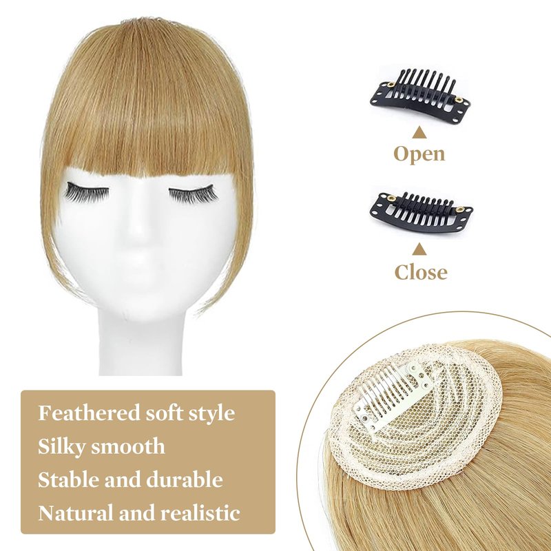 YaFex Clip In Bangs - 100% Real Human bangs hair clip, Ash Blonde Fake Bangs Hair Extensions French Clip on Air Bangs for Women Fringe with Temples Hairpieces Curved Bangs for Daily Wear