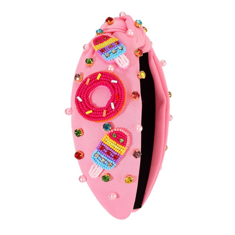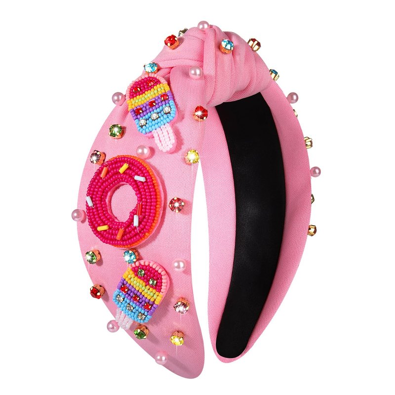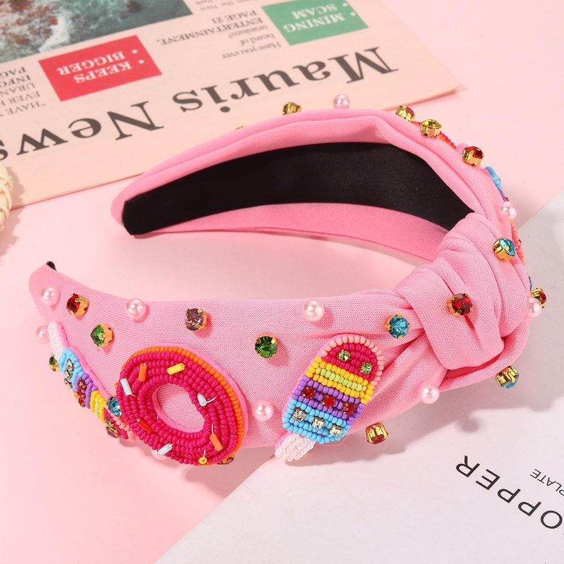 YAHPERN Ice Cream Headbands Summer Headband for Women Colorful Beaded Sweet Donut Headband Embellished Rhinestone Crystal Knotted Headband Summer Beach Accessories Holiday Party Gifts