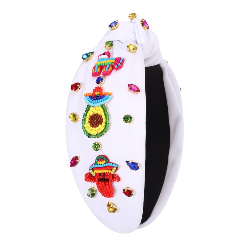 YAHPERN Mexican Headband for Women Cinco De Mayo Headband Beaded Fiesta Knotted Headband Embellished Rhinestone Crystal Wide Top Knot Headband Mexican Holiday Hair Accessory Party Favors Gifts (Mix)