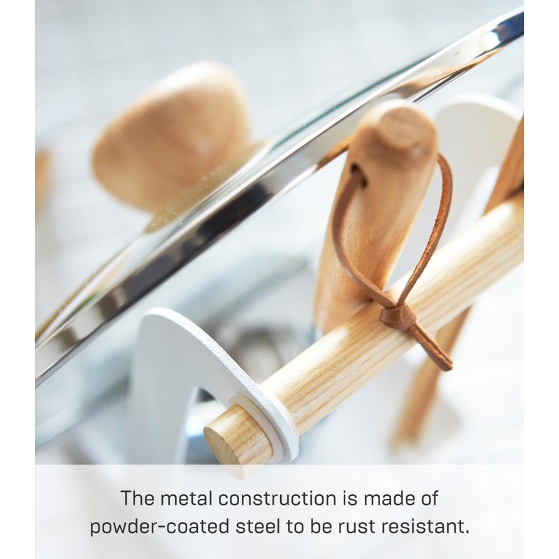 Yamazaki Home Ladle & Lid Rest - Kitchen Utensil Organizer Stand for Cooking Steel + Wood White