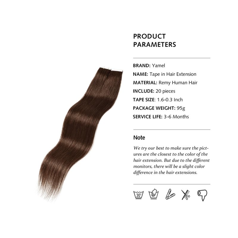 Yamel Tape In Hair Extensions Human Hair Medium Brown Hair Extensions 10 Inch 20pcs Tape In Human Hair Extensions