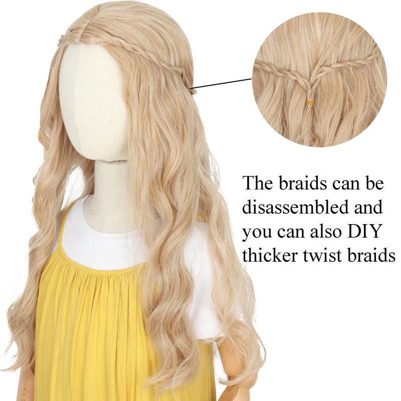 - PACKAGE: 1pc kids wavy princess wig + 1pc hairnet