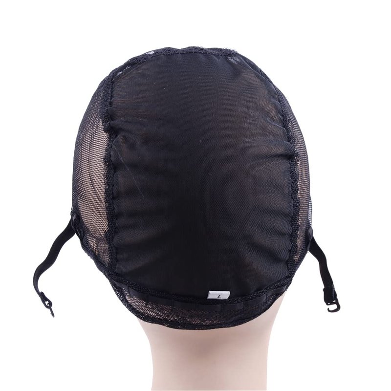 YANTAISIYU 1Pc Weaving Wig Cap with Elastic Band and 2 Hair Clips Front for Wig Making Hair Extensions Weft DIY (Black L)