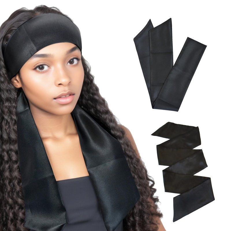 YANTAISIYU 2 Pcs Satin Edge Laying Scarf Hair Wrap Wigs Grip Band Wrapping Head Fashion Headband for Laying Lace Frontal Wigs Non Slip Hair Wrap Headband for Yoga, Makeup, Facial, Sport (Black)