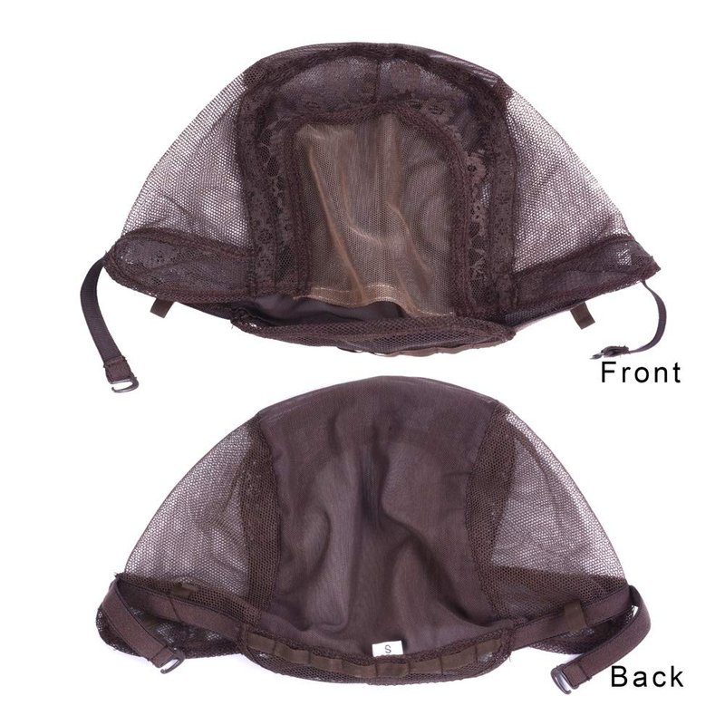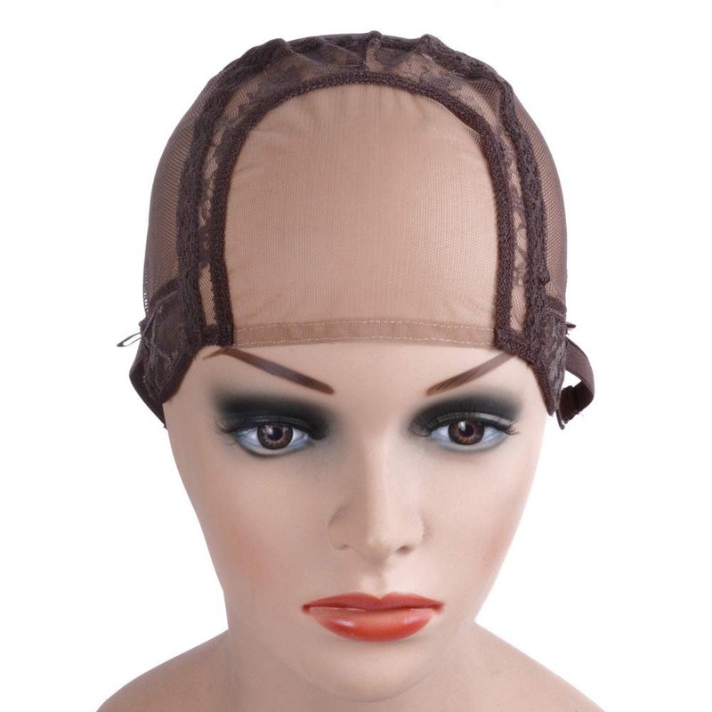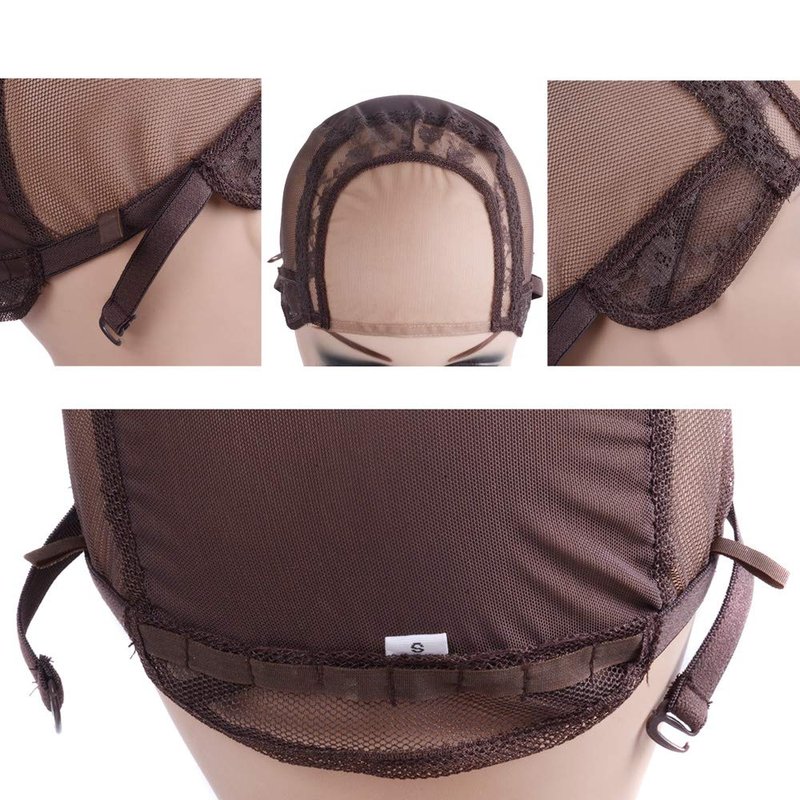YANTAISIYU 4X4 Inch U Part Swiss Lace Wig Cap for Making Wigs with Adjustable Straps on the Back Glueless Hairnets (Dark Brown M)