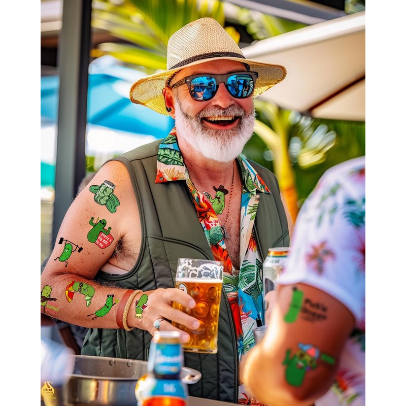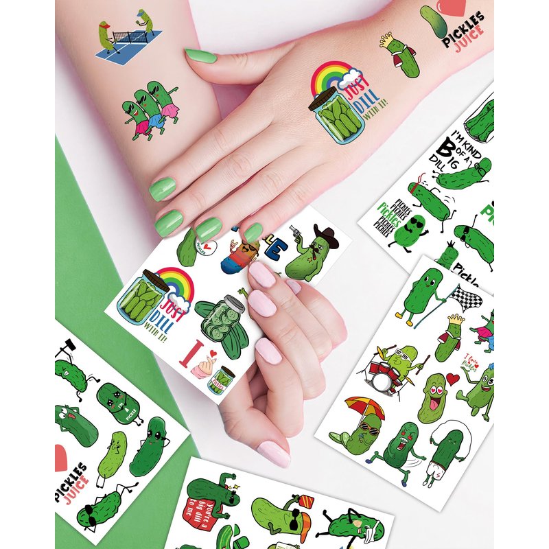 - Funny Temporary Tattoos: Included in this pack are cool temporary tattoos with pickle designs. These are a fun and quirky way to show your love for pickles. Great for kids and adults alike, these tattoos are an excellent addition to any pickle party.