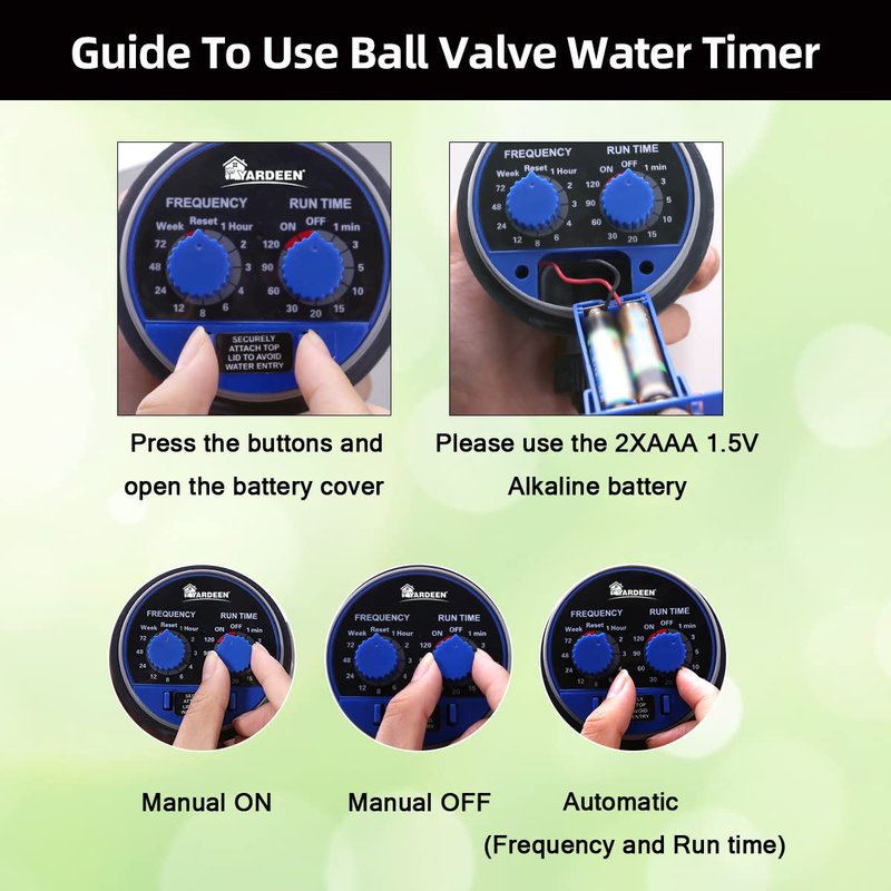 The Yardeen water timer is made by ABS Plastic and can be used many years.