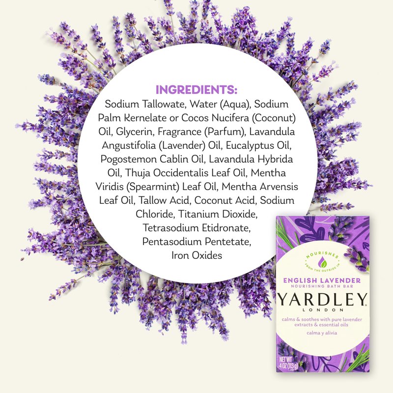 Yardley London Nourishing Bath Soap Bar English Lavender, Calms & Soothes with Pure Lavender Extracts & Essential Oils 4.0 oz Bath Bar, 2 Soap Bars