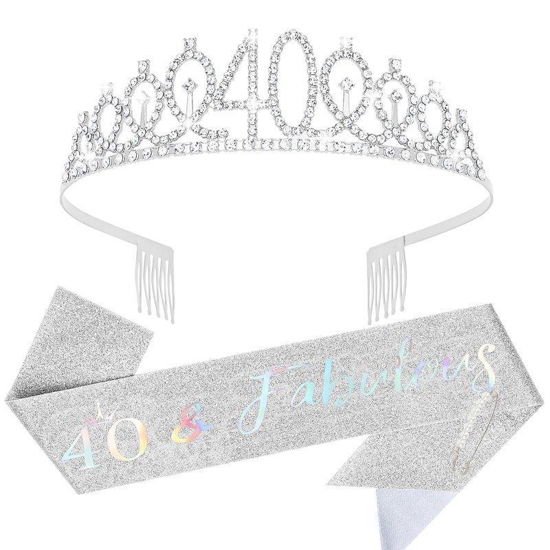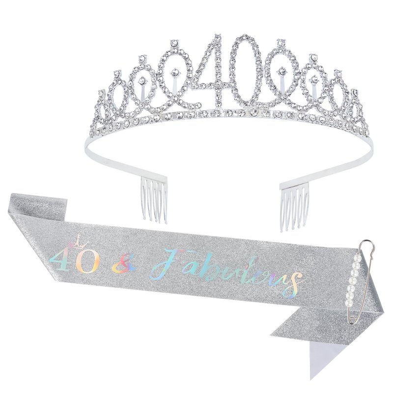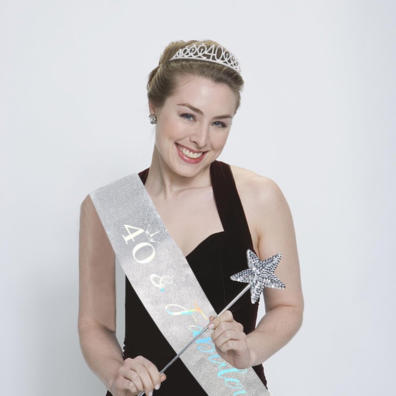 - Perfect for Birthday Party Set: "40 & Fabulous" silver satin sash and a silver rhinestone crown with a beautiful pearl pin. When worn, the Queen's temperament is immediately apparent and the crowd will be dazzled.
