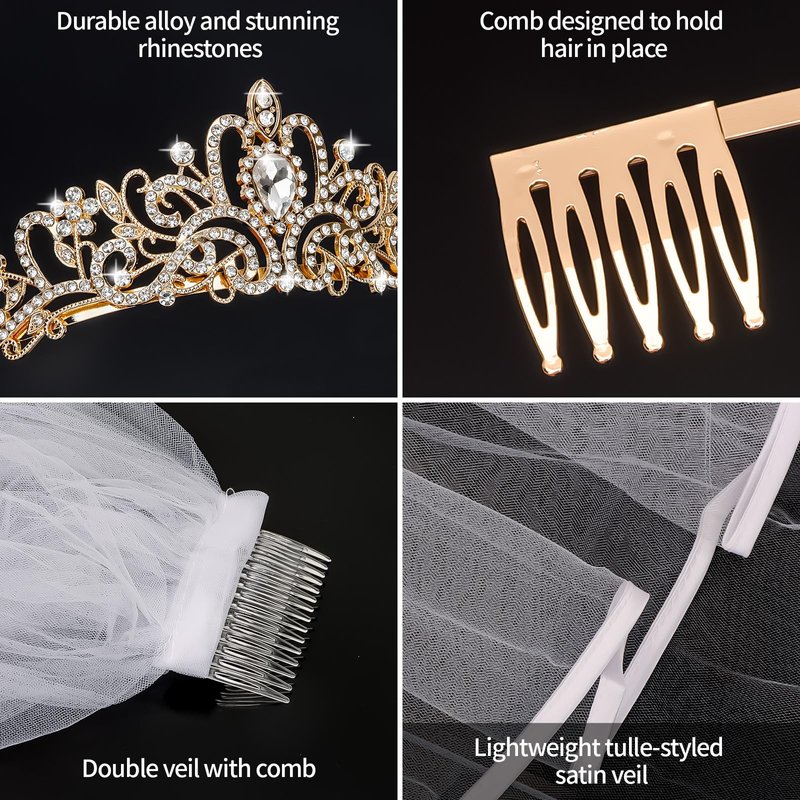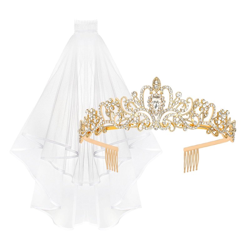 - Ideal Gift: The wedding bridal crown exudes elegance and luxury. Whether it's for your wife, friends, family or yourself, this wedding crown for bride with veil set is the best gift choice. Grab your gold crown and bride veil get ready for your any party together! We hope it brings you much happiness and makes you stand out from the crowd.
