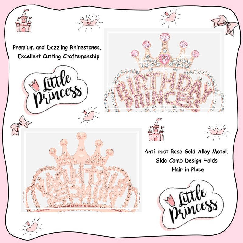 - Unique Design: The pink "BIRTHDAY PRINCESS" rhinestone design in the center of the crown makes you look like a princess or a queen, more charming and stunning. The sparkling rhinestones are set into the alloy and will not come off easily. No matter when or where, it keeps up with the fashion trend.