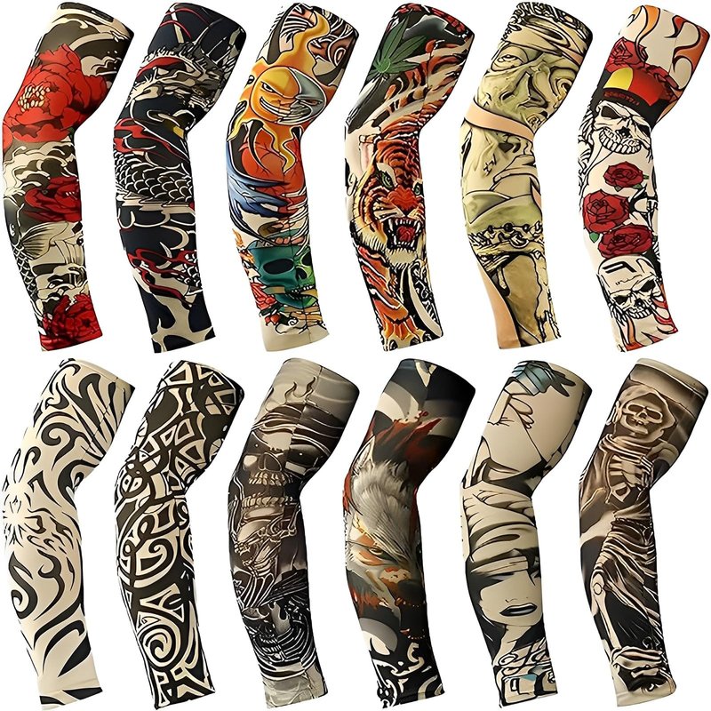 YARIEW Tattoo Sleeves for Men, 12Pcs Arm Sleeves Fake Tattoos Sleeves to Cover Arms Cooling Sun Protection Sleeves