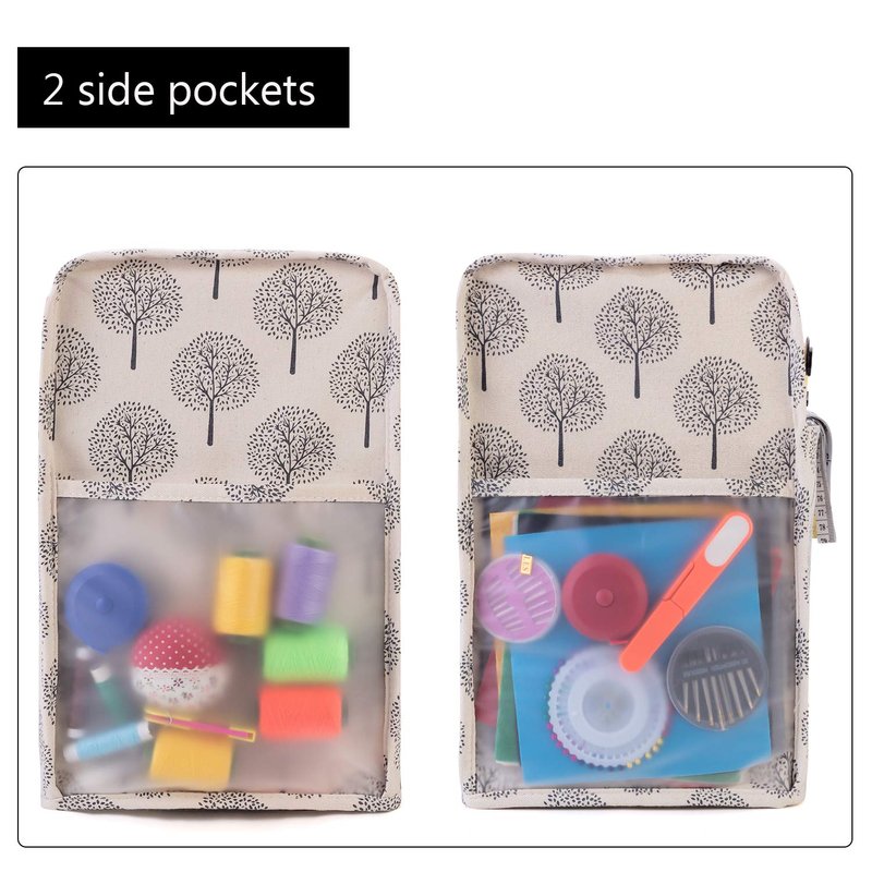 - ROOMY: Multiple pockets can store your sewing supplies, like needles, scissors, clips, thread, tape measure, foot controls..Side translucent pockets are easy access to what inside.