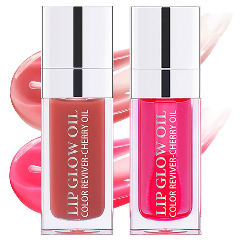 Yasovigi Hydrating Lip Oil Plumping Lip Tint Moisturizing Lip Gloss, Transparent Lip Balm Care Stick Nourishing Repairing Non-sticky, Moisture&Lighten Lip Lines (Cherry + Rosewood)