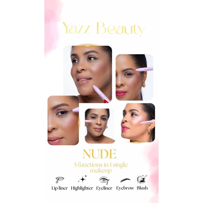 YazzBeauty 4-in-1 Touch-Up Makeup Pen (Nude) - Medium Brown Eyebrow Pencil, a Nude Lip Liner, a Black Eyeliner, and a Radiant White Matte Highlighter – Ideal for Travel