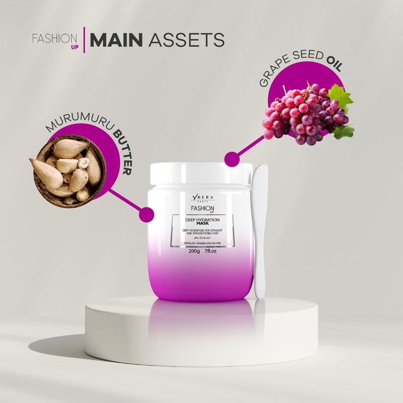 YBERA PARIS Fashion UP Mask | Ideal for Extremely Dry Hair | Shining Hair | Color Safe | Enhanced with Oil Grape Seed & Murumuru | Sulfates-Parabens Free | 7.0 Oz