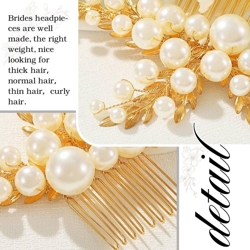 - Pearl wedding hair comb is made of high quality alloy,pearl and leaf,100% handmade hair accessories will decorate you elegant.