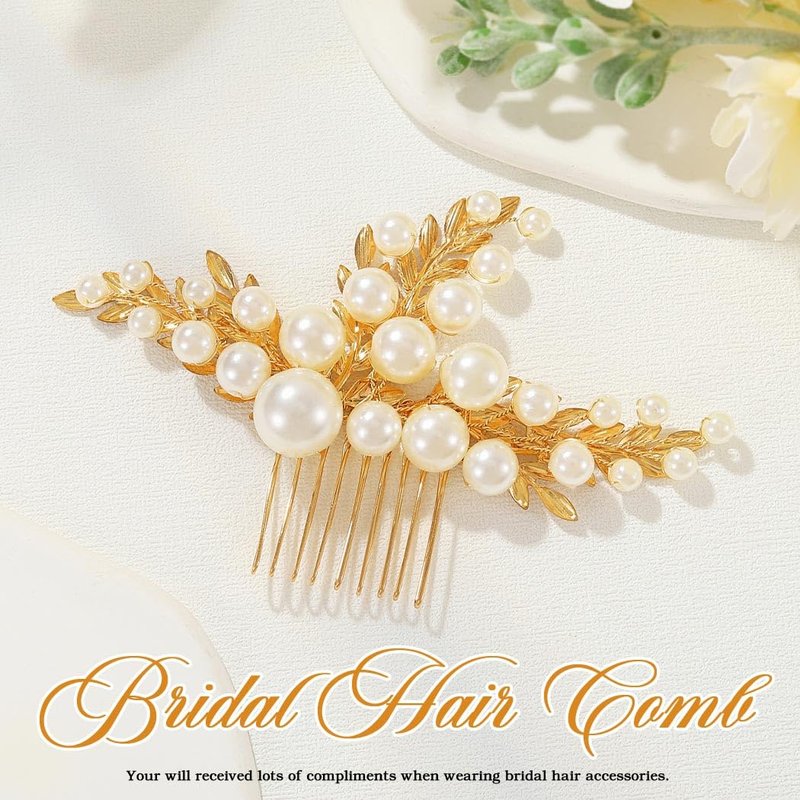 YBSHIN Bride Wedding Hair Comb Gold Pearl Headpiece Leaf Hair Pieces Bridal Hair Accessories for Women