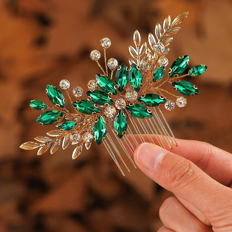 - Crystal wedding hair comb is made of high quality alloy,leaf and crystal,100% handmade hair accessories will decorate you elegant.
