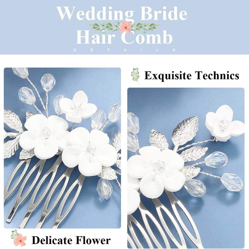- Flower wedding hair comb is made of high quality alloy,flower and rhinestone,100% handmade hair accessories will decorate you elegant.
