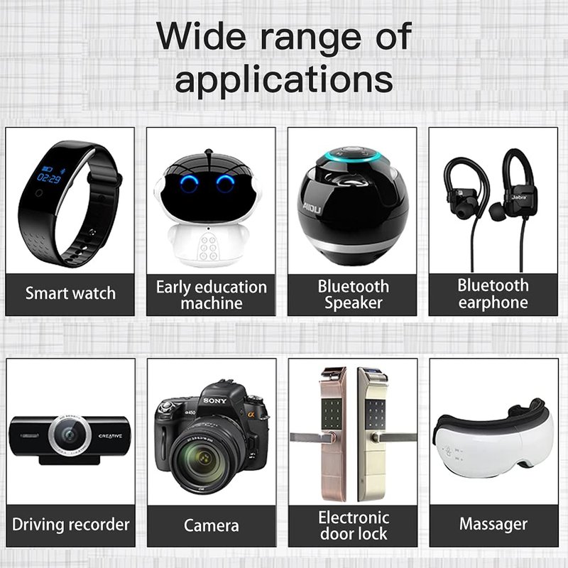 Suitable for MP3/MP4, bluetooth wireless headset,GPS,baby monitor, PSP controller, game boy, doorbell, skybell, smart watch,monitoring units, POS machine, dashcam,mobile power, bluetooth speaker, VR glasses,beauty devices, pet tracker,ring video doorbell etc.