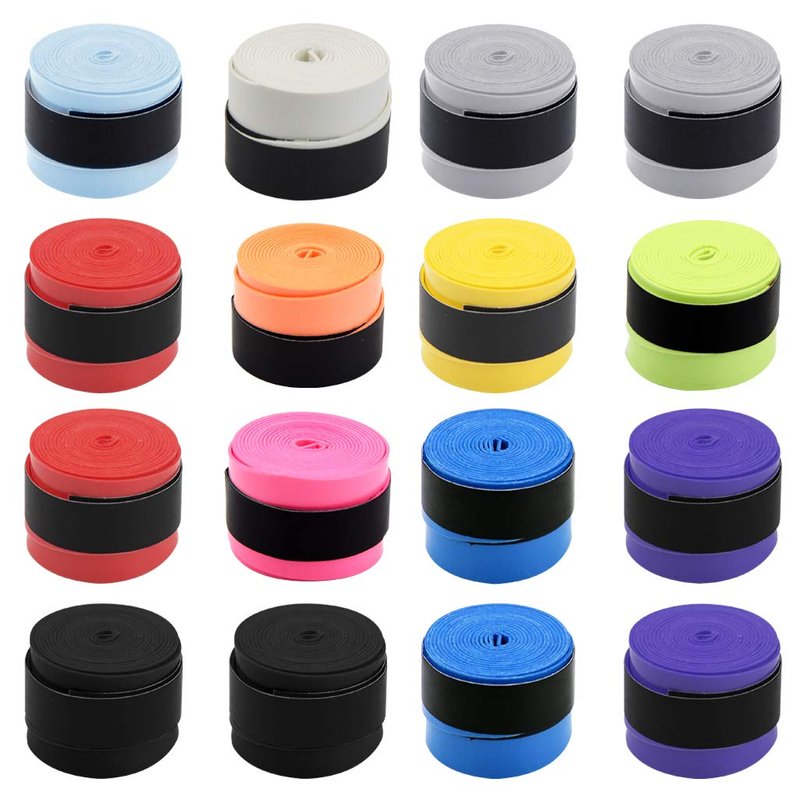 - Color: 16 pieces overgrips in black, white, red, blue, grey, orange, purple, ect. Total 12 color, express your style on court by choosing your favorite tennis wrap grip tape designs.
