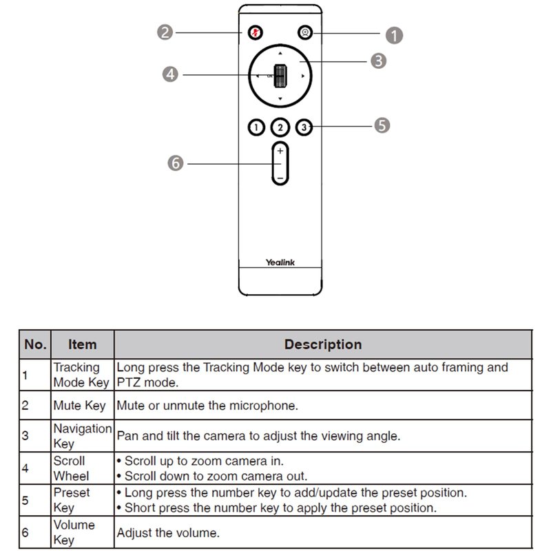 - Yealink VCR20 Remote Control compatible with UVC34 & UVC40 Conference Camera.