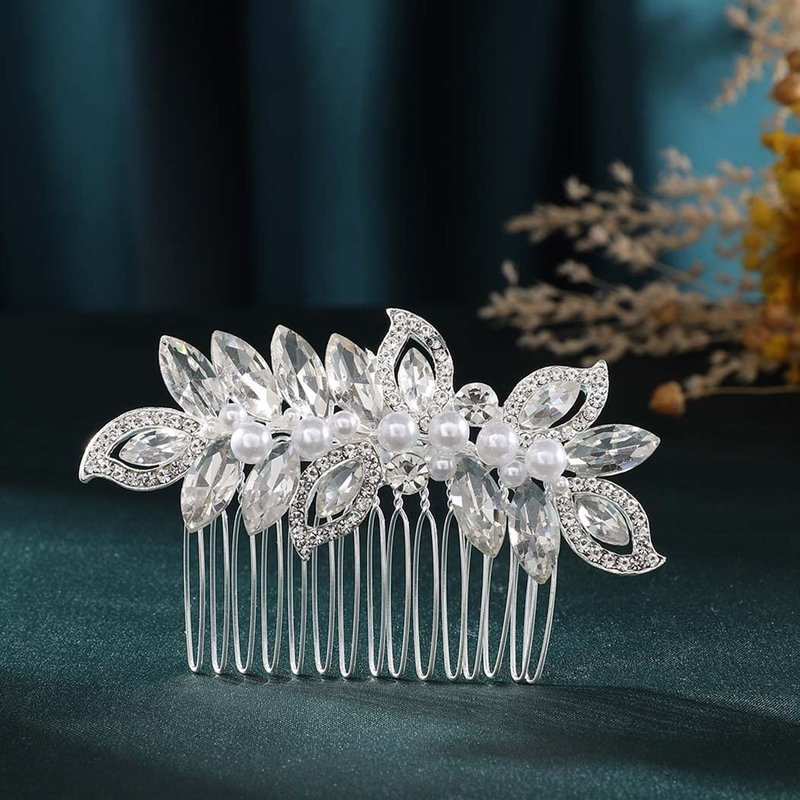 - Wedding hair comb is made of Grade A Rhinestones, pearl,and Alloy.