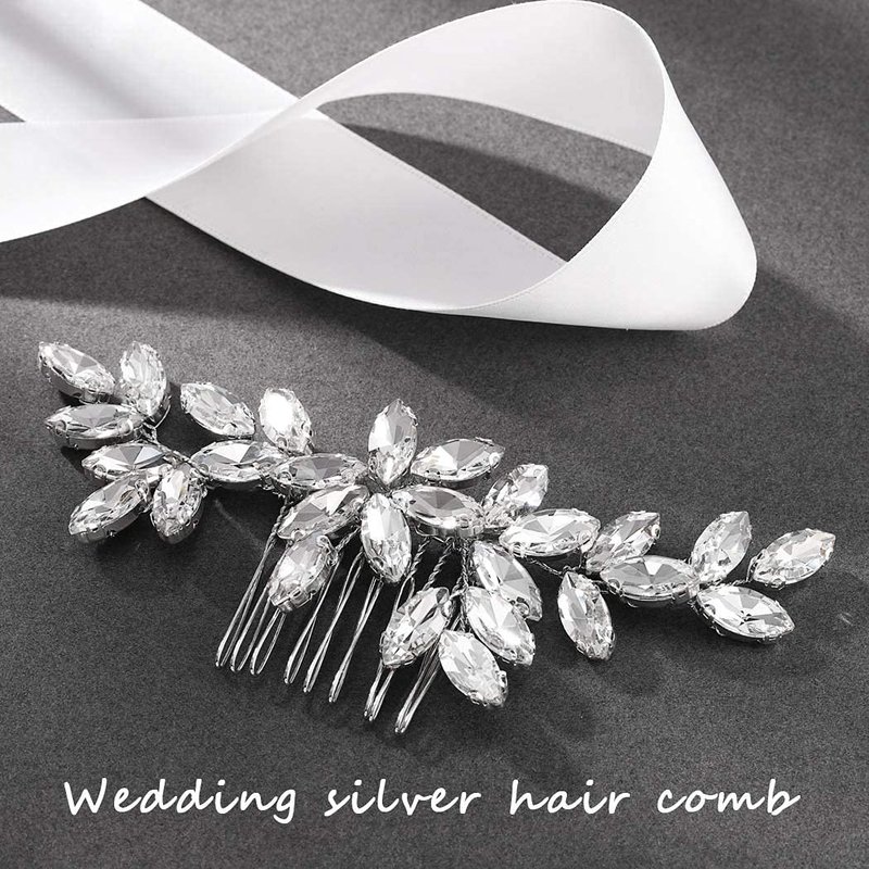 Yean Flower Bride Wedding Hair Comb Crystal Bridal Hair Piece Rhinestone Hair Accessories for Women and Girls (Silver)
